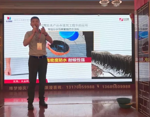 郝總,從每款產(chǎn)品出發(fā),什么產(chǎn)品用在什么地方?怎么用?用的過程中要注意哪些細(xì)節(jié)等方面講起。泥瓦工師傅們紛紛表示,這樣的會議,漲知識!的確,大而空的話誰都會說,做防水,講究的是真材實(shí)料!