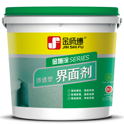 金施涂滲透型界面劑,擁有強滲透性、凈味環(huán)保、防潮防霉、基層加固等特點。