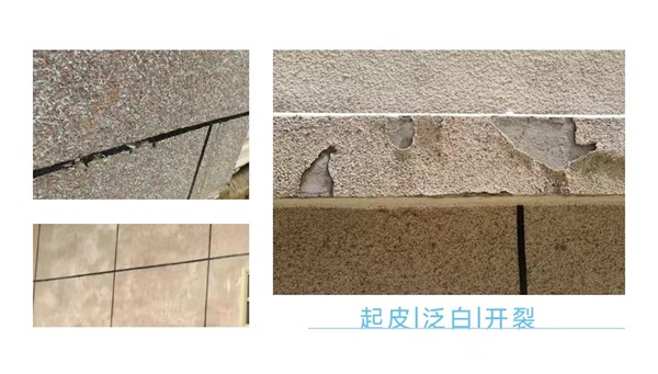 建筑外墻常年飽受風(fēng)吹日曬,經(jīng)常會遇到很多問題,例如空鼓、掉皮、龜裂、發(fā)花……這就很考驗仿石漆的耐候性能、抗裂性能、耐污性能等,都關(guān)乎最后的效果和使用壽命。