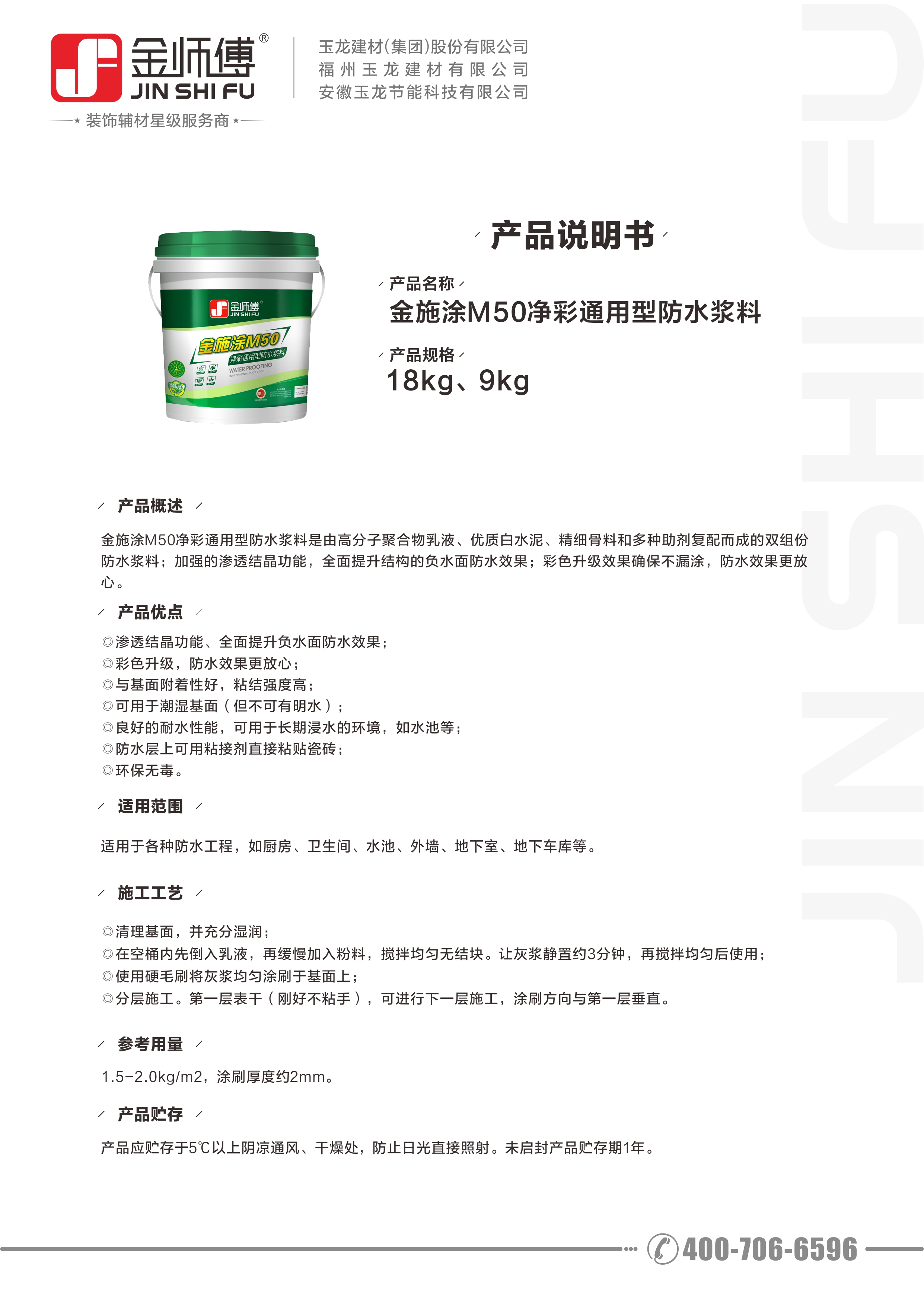 產(chǎn)品名稱:金施涂M50凈彩通用型防水漿料