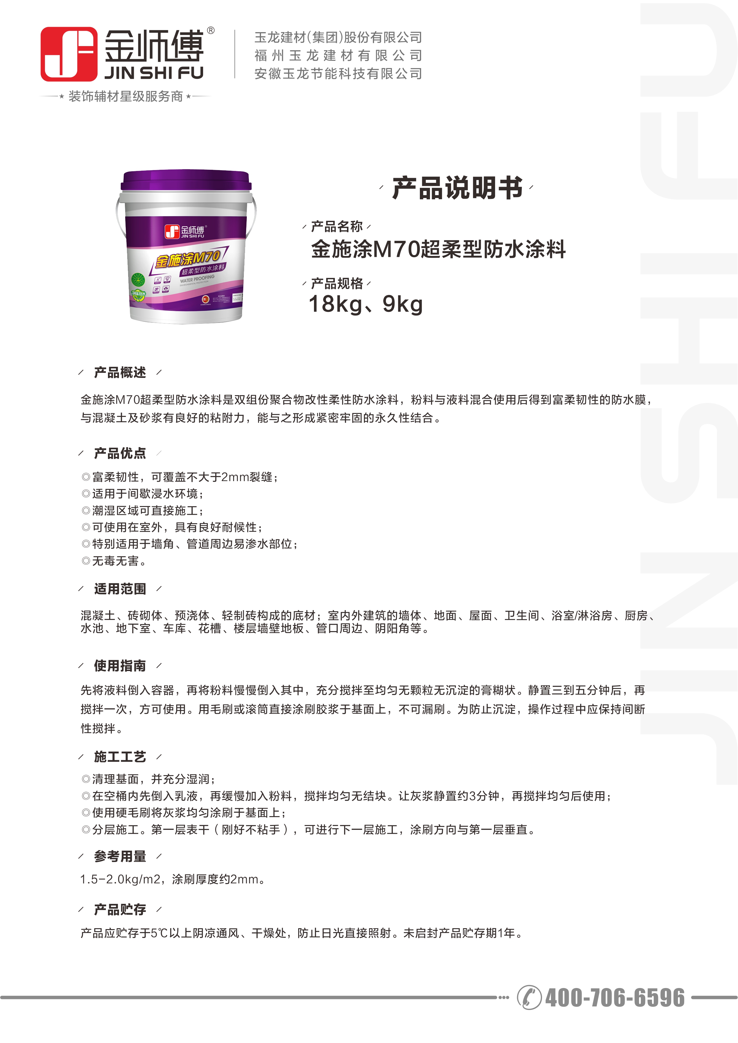 金施涂M70超柔型防水涂料